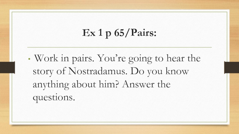 Ex 1 p 65/Pairs: Work in pairs. You’re going to hear the story of Nostradamus. Do you know