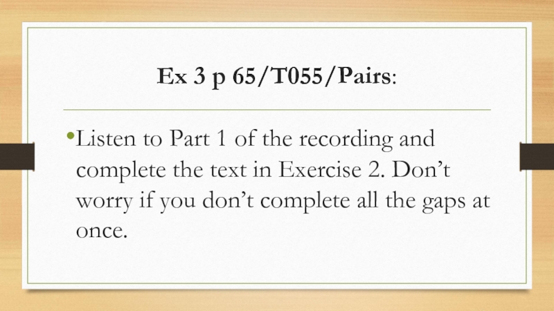Слайд 6Ex 3 p 65/T055/Pairs: