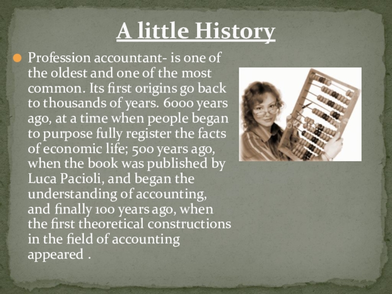 of the most common. Its first origins go back to thousands of years. 6000 years ago, at a time when people began to purpose fully register the facts of economic life; 500 years ago, when the book was published by Luca Pacioli, and began the understanding of accounting, and finally 100 years ago, when the first theoretical constructions in the field of accounting appeared .