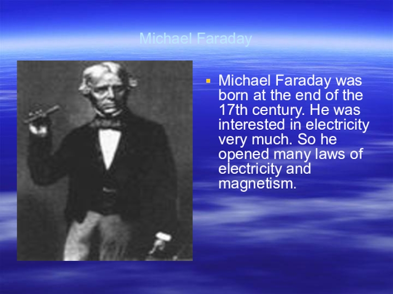 century. He was interested in electricity very much. So he opened many laws of electricity and magnetism.