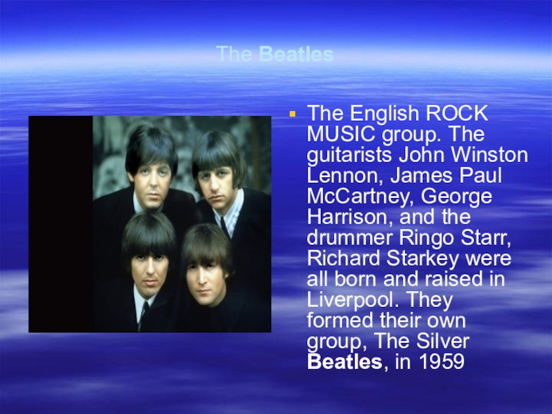 The English ROCK MUSIC group. The guitarists John Winston Lennon,