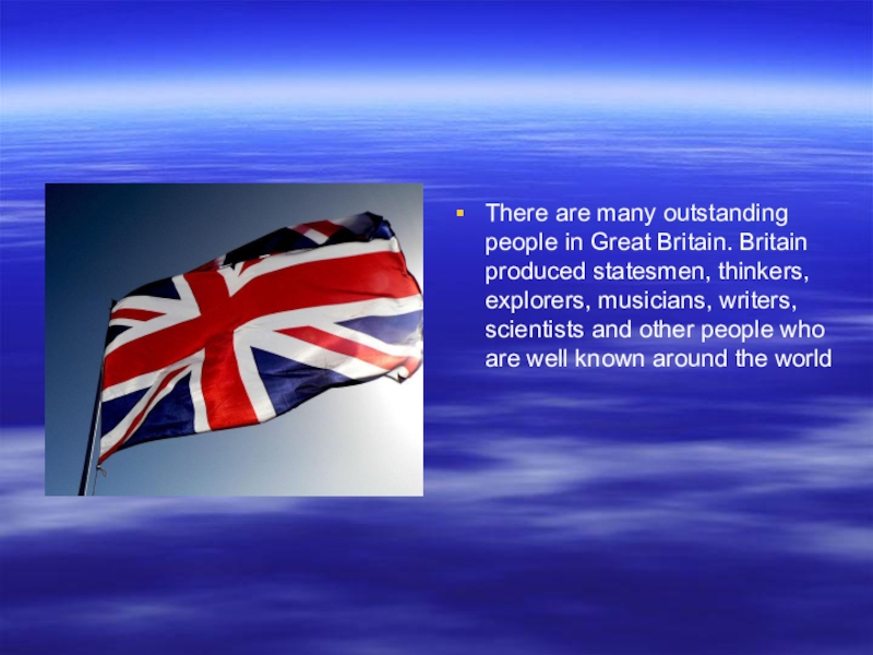 There are many outstanding people in Great Britain. Britain produced statesmen,