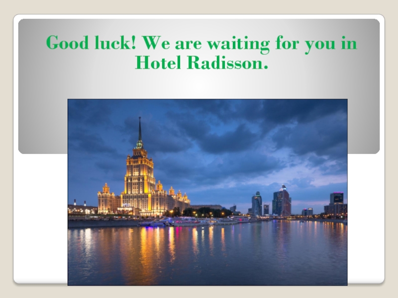 Слайд 15Good luck! We are waiting for you in Hotel Radisson.