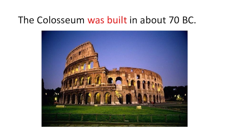 Слайд 2The Colosseum was built in about 70 BC.