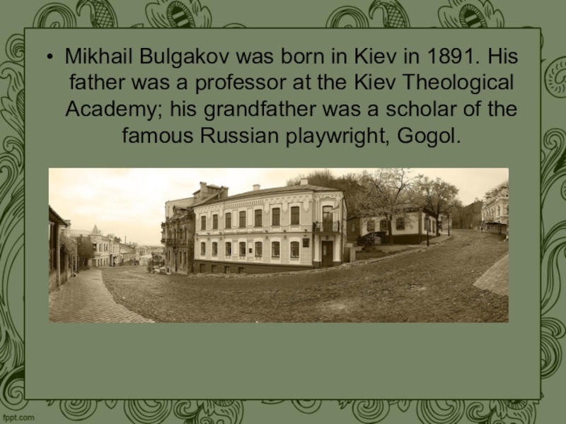 Слайд 2Mikhail Bulgakov was born in Kiev in 1891. His father was