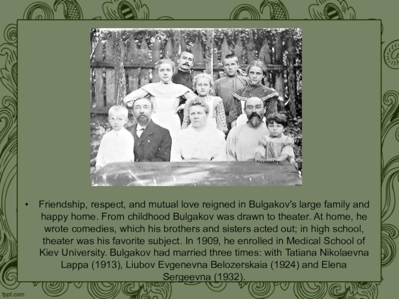 Слайд 3Friendship, respect, and mutual love reigned in Bulgakov's large family and