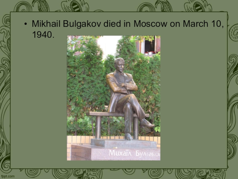 Слайд 9Mikhail Bulgakov died in Moscow on March 10, 1940.