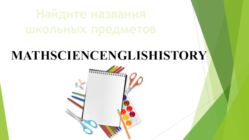 MATHSCIENCENGLISHISTORYНайдите названия школьных предметов