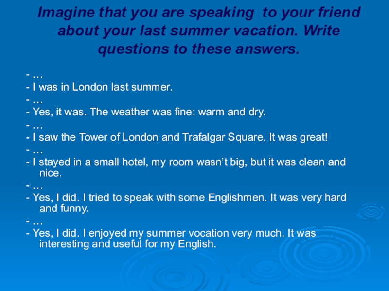 - Yes, I did. I enjoyed my summer vocation very much. It was interesting and useful for my English.