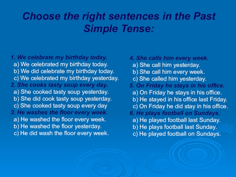 a) He played football last Sunday.