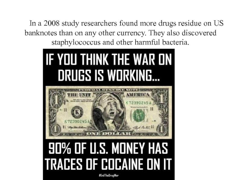 In a 2008 study researchers found more drugs residue on US banknotes than on any other currency.