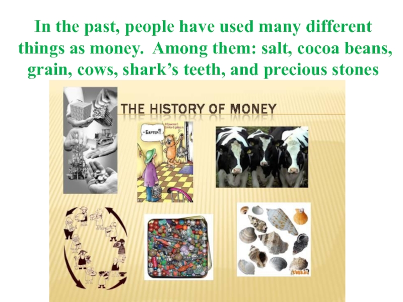 In the past, people have used many different things as money.  Among them: salt, cocoa beans, grain,