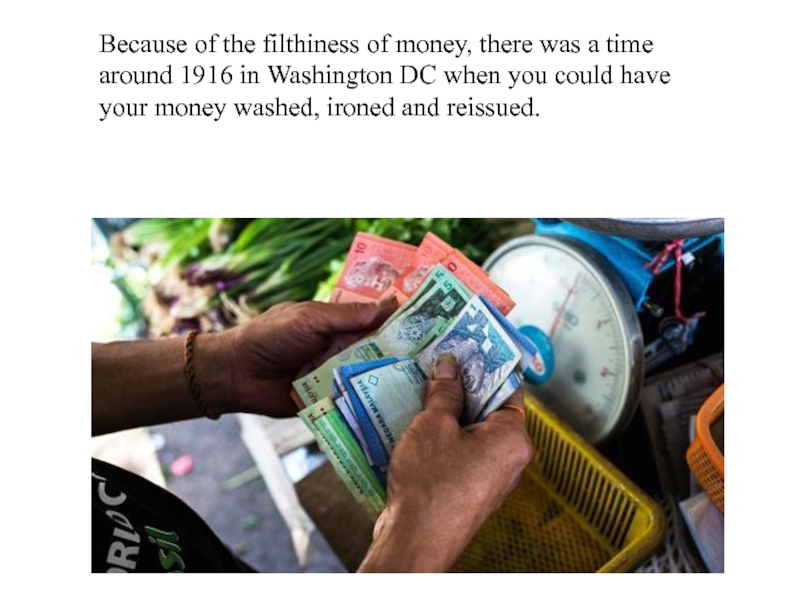 Because of the filthiness of money, there was a time around 1916 in Washington DC when you