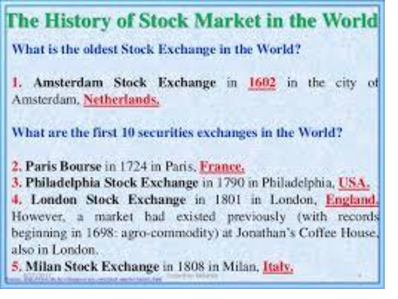 A.The world’s smallest banknote, issued in Morocco, was the size of a postage stamp.B. The first European stock exchange was established in Antwerp, Belgium, in 1531.