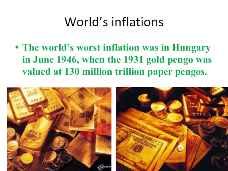 World’s inflationsThe world’s worst inflation was in Hungary in June 1946, when the 1931 gold pengo was
