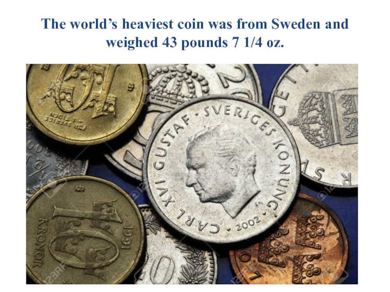 Слайд 10The world’s heaviest coin was from Sweden and weighed 43 pounds