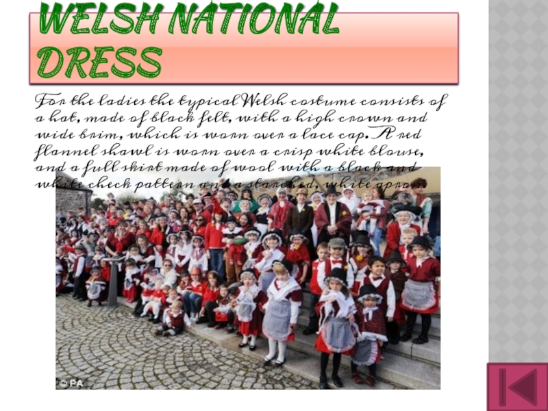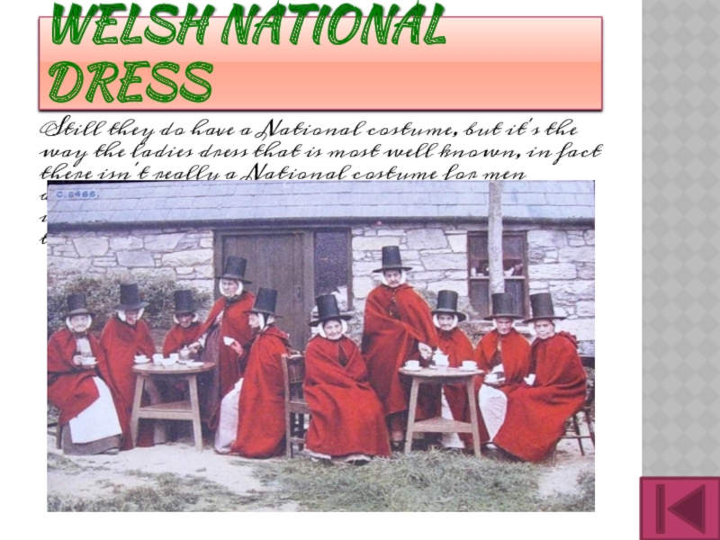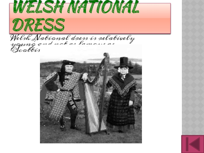 Слайд 16Welsh National dress is relatively young and not as famous as