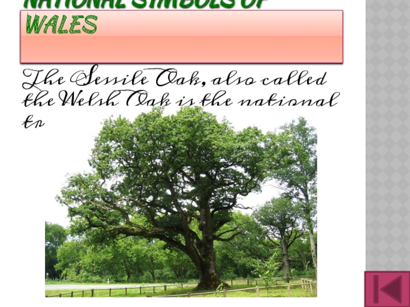 Слайд 14The Sessile Oak, also called the Welsh Oak is the national
