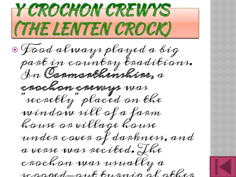Слайд 52Y Crochon Crewys (The Lenten Crock)