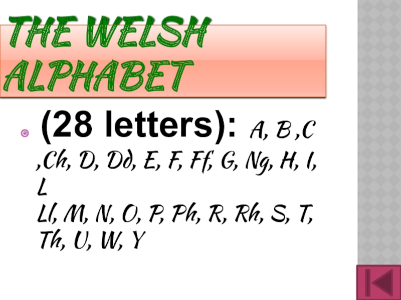 (28 letters): A, B ,C ,Ch, D, Dd,