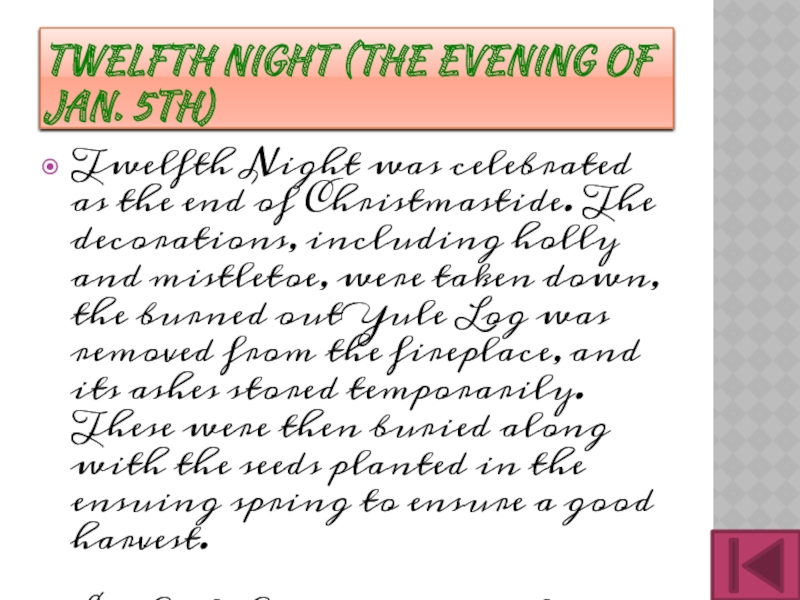 Слайд 48Twelfth Night (the evening of Jan. 5th)