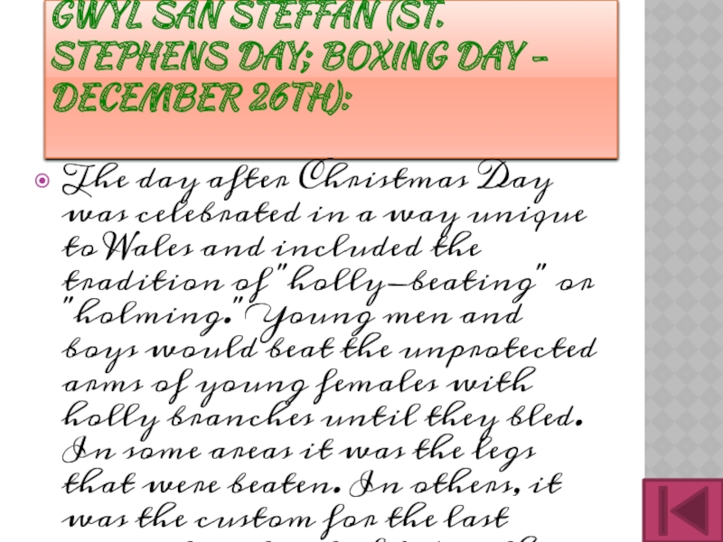 Слайд 45GWYL SAN STEFFAN (St. Stephens Day; Boxing Day - December 26th):