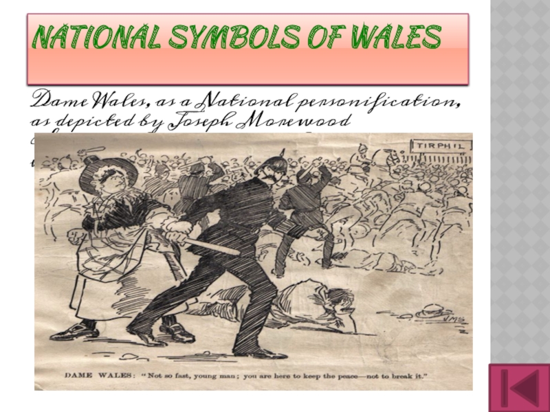 Слайд 15Dame Wales, as a National personification, as depicted by Joseph Morewood
