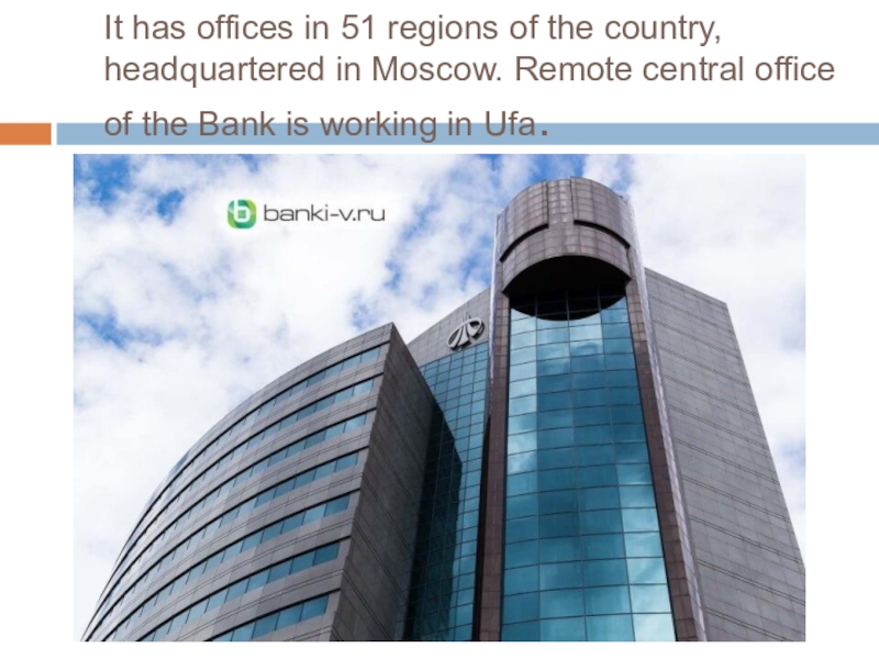 Слайд 3It has offices in 51 regions of the country, headquartered in