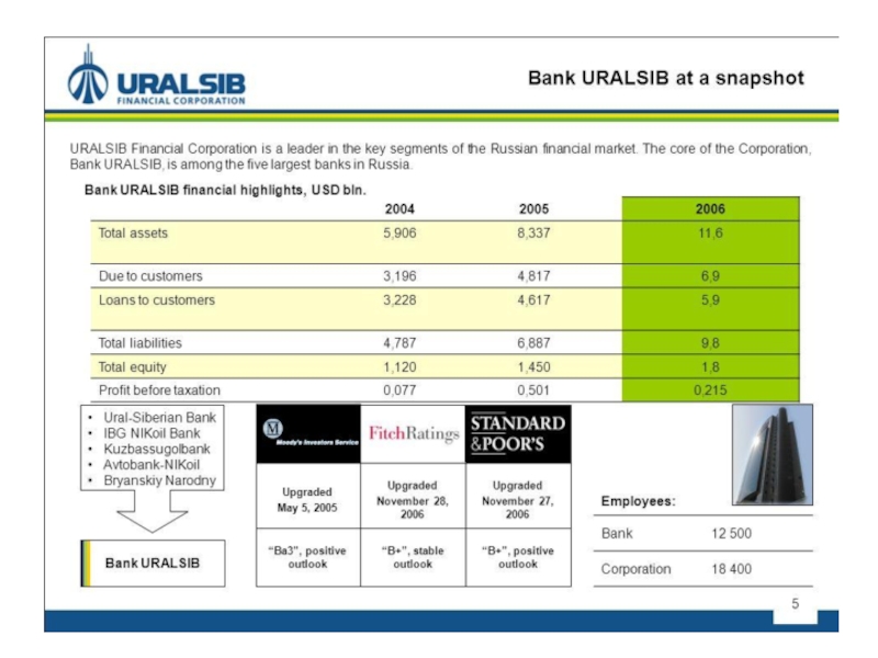 Слайд 7URALSIB Bank,is among five largest in