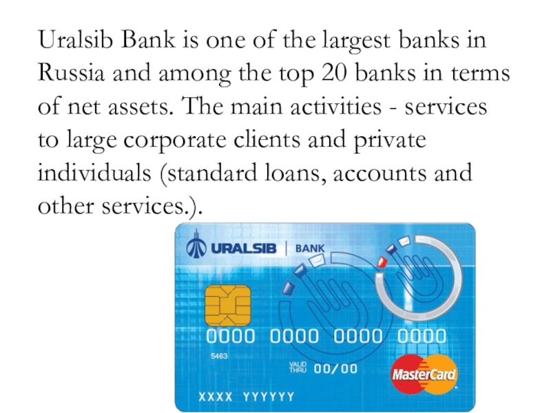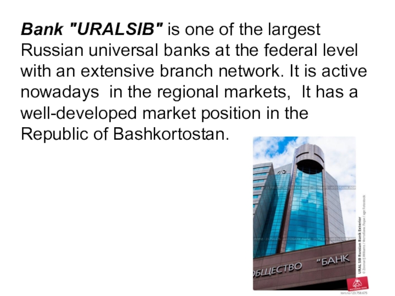 Слайд 4Uralsib Bank is one of the largest banks in Russia and