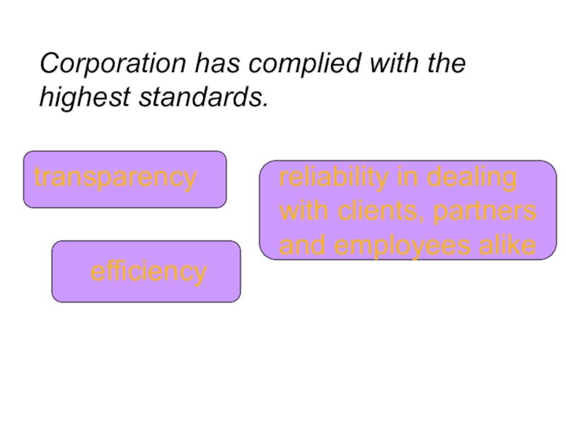Corporation has complied with the highest standards.transparencyefficiencyreliability in dealing with clients, partners and employees alike