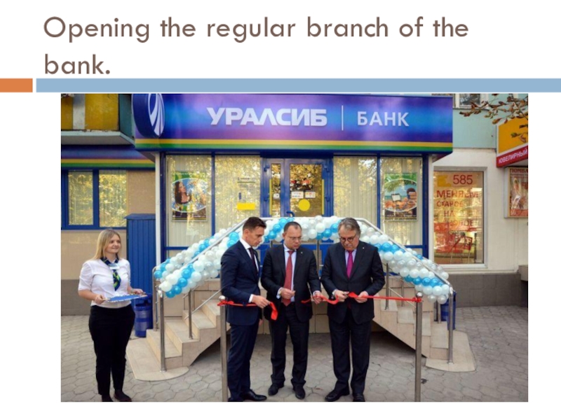 Слайд 10Opening the regular branch of the bank.