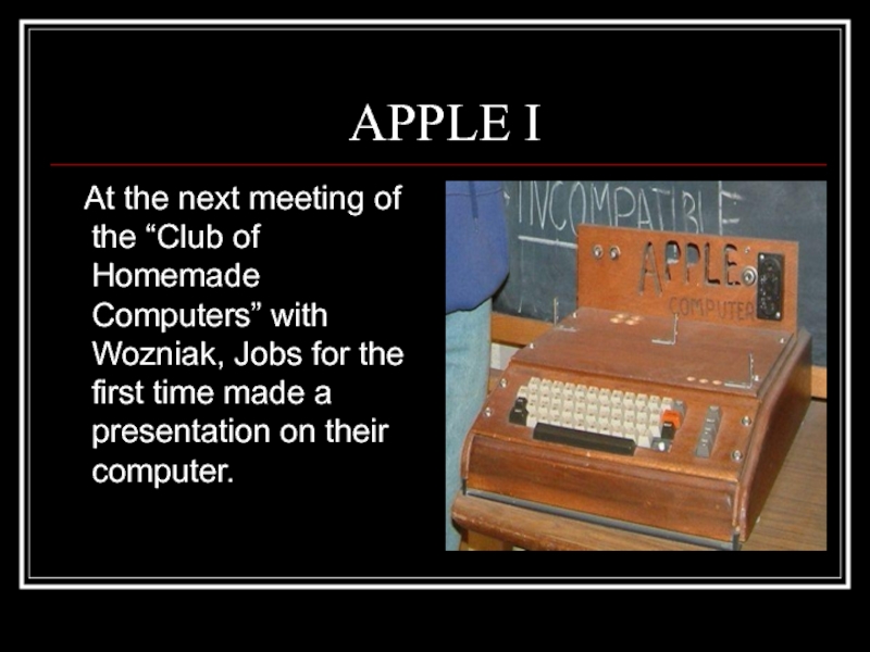 At the next meeting of the “Club of Homemade Computers” with Wozniak, Jobs for the first time made a presentation on their computer.