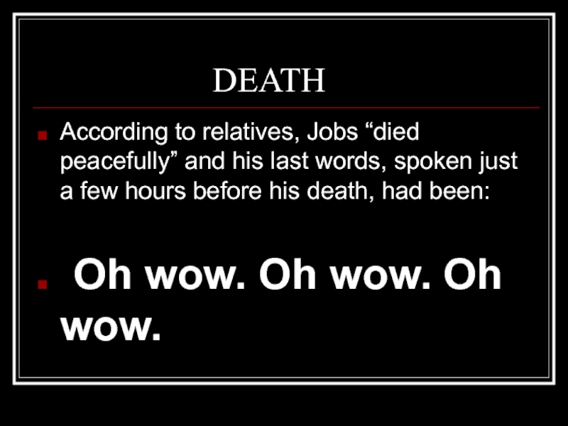 to relatives, Jobs “died peacefully” and his last words, spoken just a few hours before his death, had been: