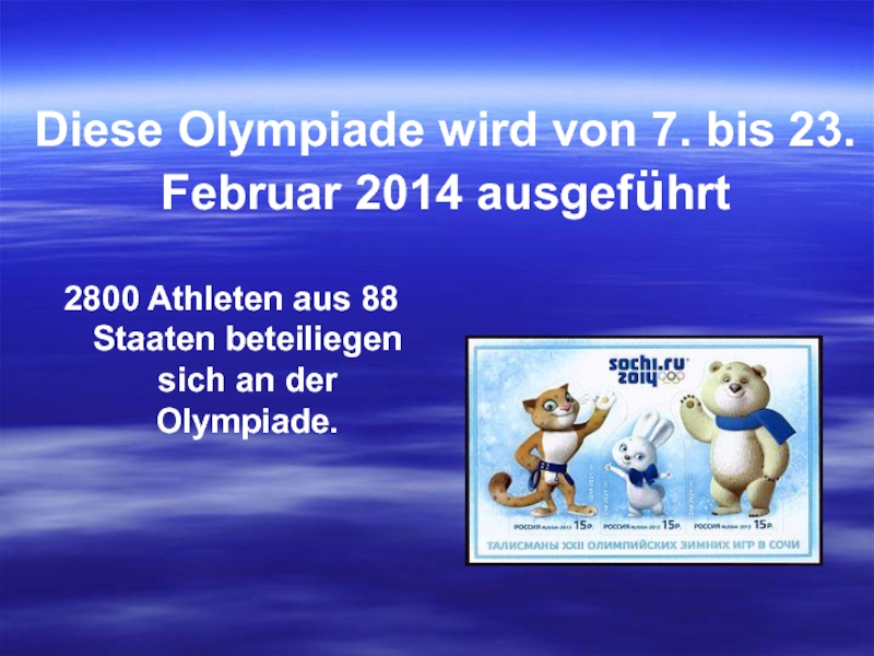 Слайд 2Diese Olympiade wird von 7. bis 23. Februar 2014 ausgeführt