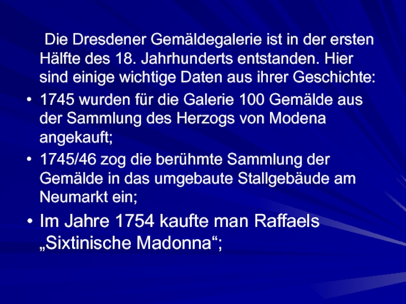 Слайд 4 Die Dresdener Gemäldegalerie ist in der ersten Hälfte des 18. Jahrhunderts