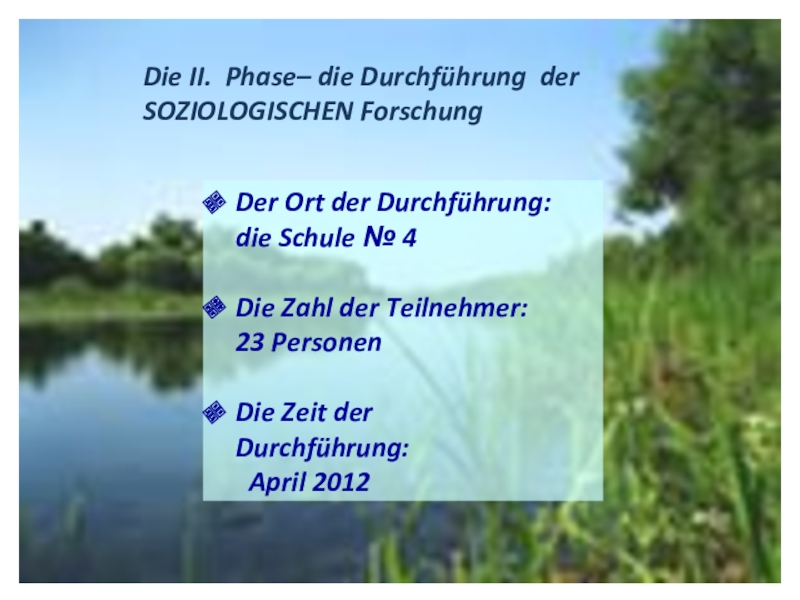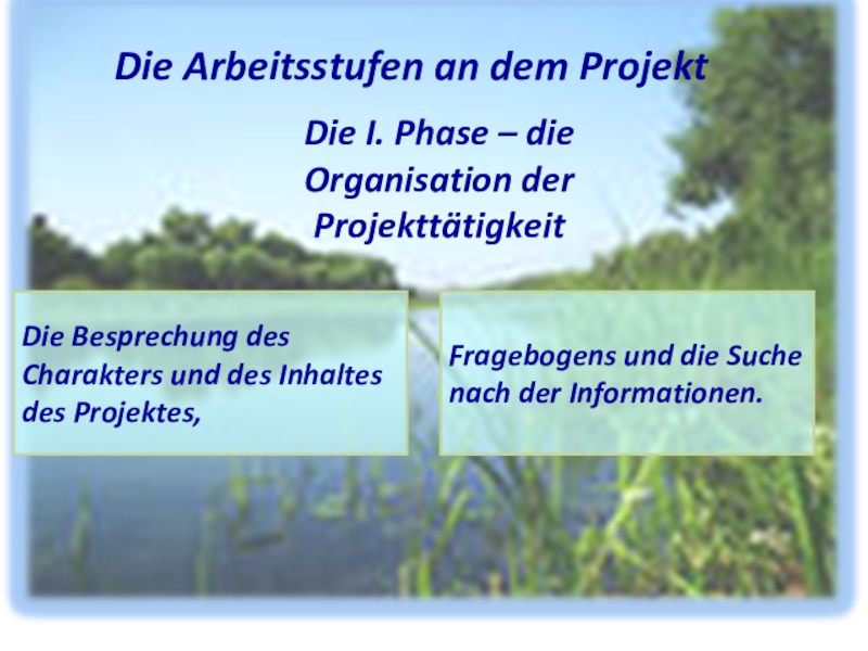 Die Besprechung des Charakters und des Inhaltes des Projektes,
