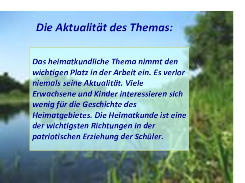 die Erziehung der Liebe und Achtung vor dem Heimatland