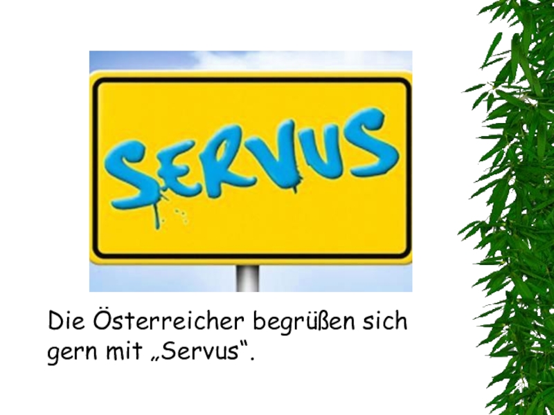 Слайд 5Die Österreicher begrüßen sich gern mit „Servus“.