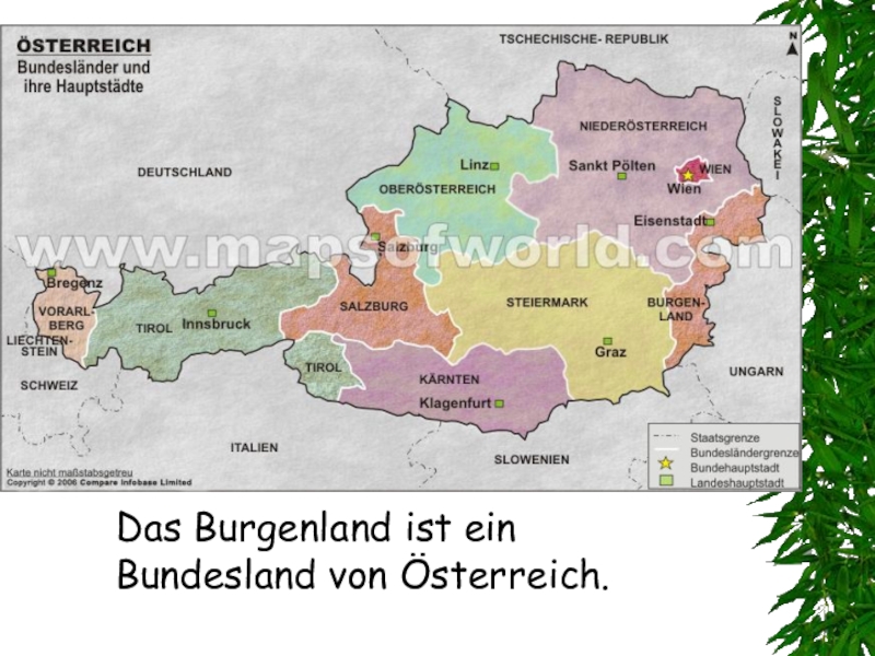 Слайд 16Das Burgenland ist ein Bundesland von Österreich.