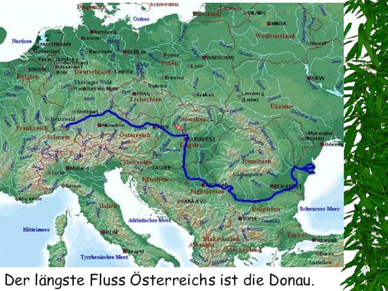 Слайд 6Der längste Fluss Österreichs ist die Donau.