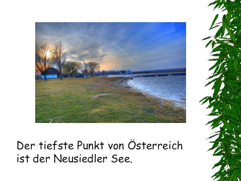 Слайд 14Der tiefste Punkt von Österreich ist der Neusiedler See.