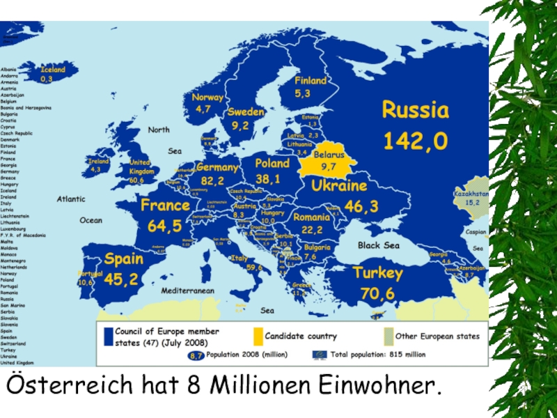 Слайд 13Österreich hat 8 Millionen Einwohner.