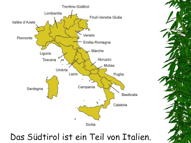 Слайд 15Das Südtirol ist ein Teil von Italien.