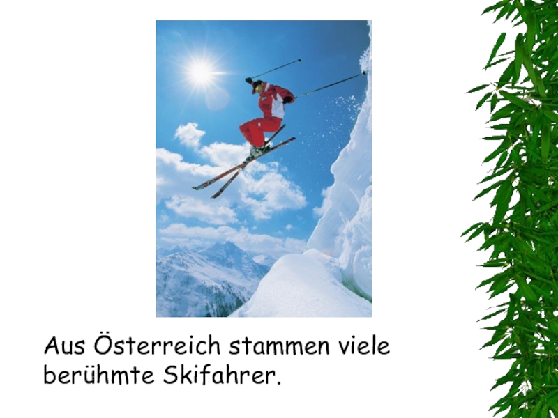 Слайд 11Aus Österreich stammen viele berühmte Skifahrer.