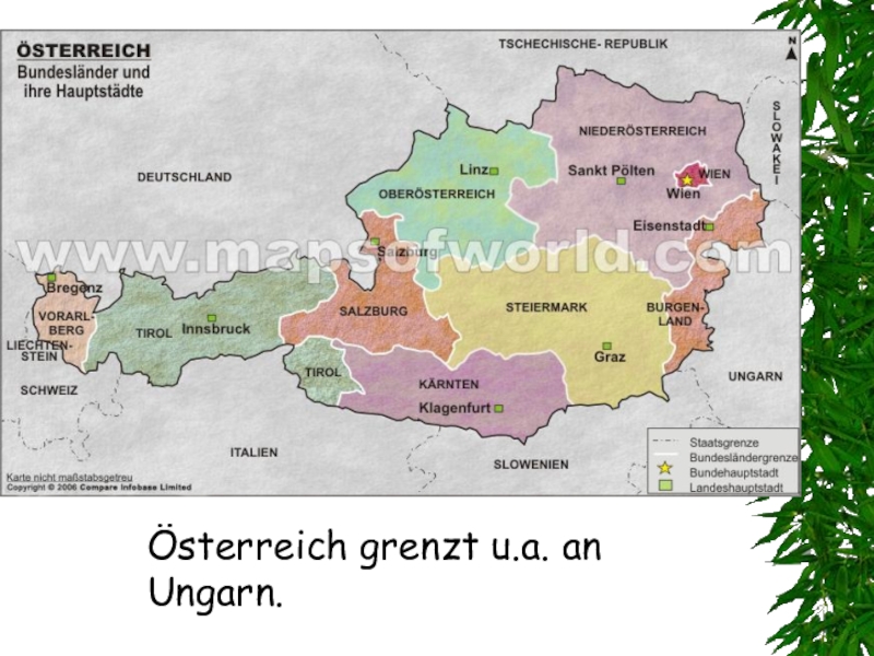 Слайд 18Österreich grenzt u.a. an Ungarn.