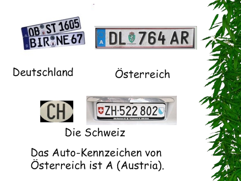 Слайд 21Das Auto-Kennzeichen von Österreich ist A (Austria).