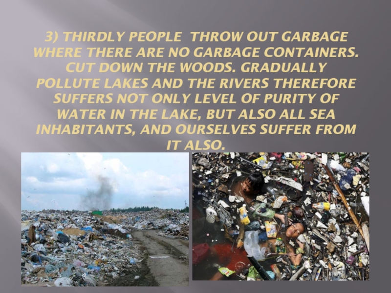 Слайд 43) Thirdly people throw out garbage where there are no garbage