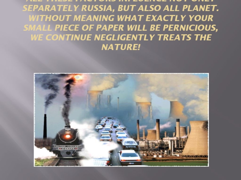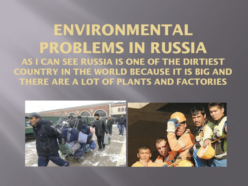 Environmental problems IN RUSSIA As I can see Russia is one of the dirtiest country in the world because it is big and there are a lot of plants and factories