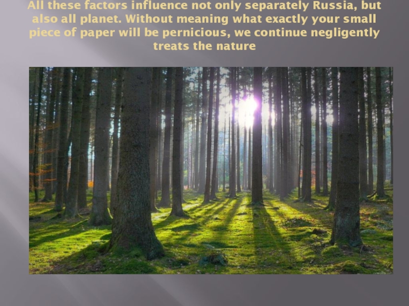 All these factors influence not only separately Russia, but also all planet. Without meaning what exactly your